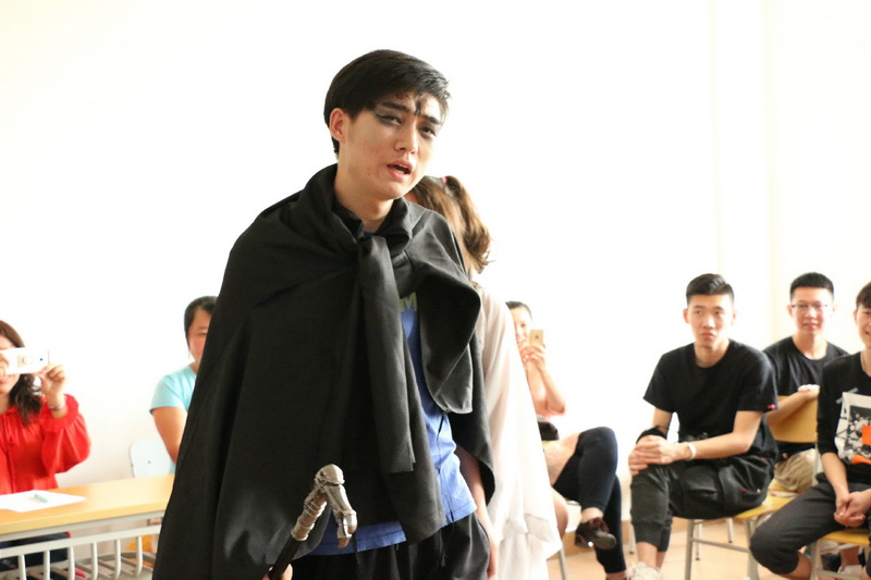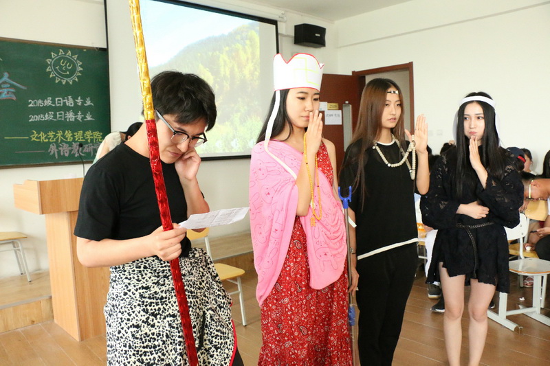 本次比赛由2015级日语、日播专业全体学生参与,以小组为单位,共有六个剧目参加比赛,由专业教师担任评委。比赛开始后,选手们紧张投入,认真参赛,将自己精心准备的参赛剧目呈现在观众和评委面前。各种五颜六色的道具和服装在灯光的映衬下熠熠生辉,整个活动教室洋溢着热情、愉悦的气氛。